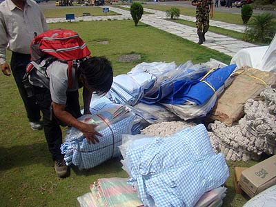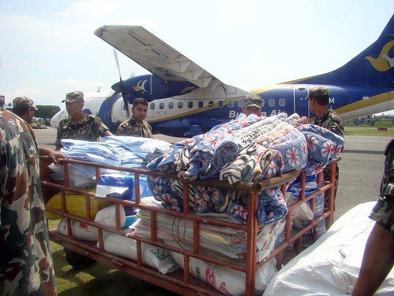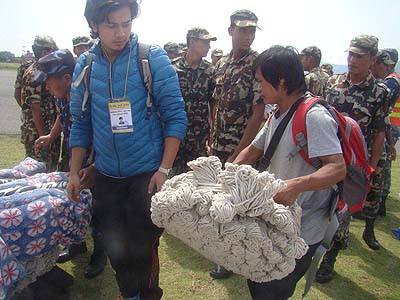 Team leader Bikas Shrestha reported by phone that the distribution was chaotic because a huge crowd was storming towards the helicopter when they were landing. Our teams and some members of the Pokhara paragliders association were finally able to create order.